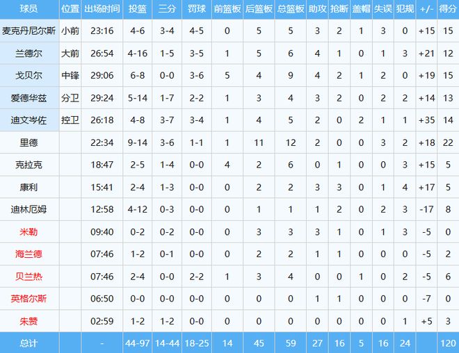 独行侠数据如下: